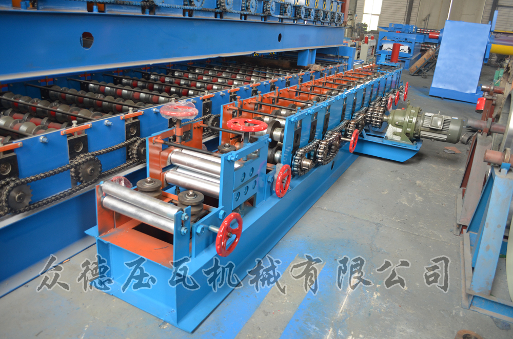 描述:主要技术参数 1. 被动放料:手动涨紧,被动放料 2. 放料架承重:10T 3. 机架:采用 350 H钢焊接,中板厚 20 MM 4. 成型机导向进料架形式:侧向滚轮式 5. 成型机形式:墙板式链传动 6. 轴径