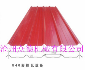 840彩钢压瓦机适用于工业与民用建筑、仓库特种建筑、大跨度钢结构房屋的屋面、墙面以及内外墙装饰等,具有质轻、高强、色泽丰富、施工方便、、、防雨、寿命长、免维护等特点。