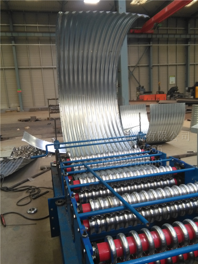 描述:波纹粮仓板压型起拱设备主要为:装料架,进料导入平台,校平装置,压型主机,起拱装置,电机装置等几部分组成;该设备采用半自动生产方式,单张板材进行冷弯滚压成型,板材波纹成型后,再进行起拱压弧步骤,弧度大小均可调节,操作简单。