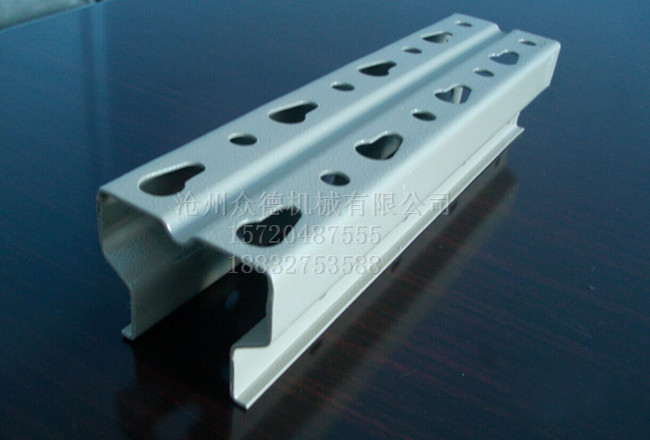 全自动冲孔货架立柱压型机,采用加粗双链轮链条传动方式,上下轴轮配备联动齿轮,传动力。该机器设备还可以通过换模具的方法,生产加工其他规格的货架型钢,经济实用。 货架立柱冷弯成型设备采用独立牌坊式立板框架结构,整体加工,,此结构的优点在于换型方便,调节方便,床身为钢板焊接件,并作回火处理,内应力,避免机身的变形,成型机架为铸铁结构,并经回火处理,,使用寿命长;另我公司还配备有抛丸打砂除锈设备,我厂生产的全部设备均经过抛丸除锈处理,机器在自然环境下生产时,不易生锈,从而延长机械的使用寿命。