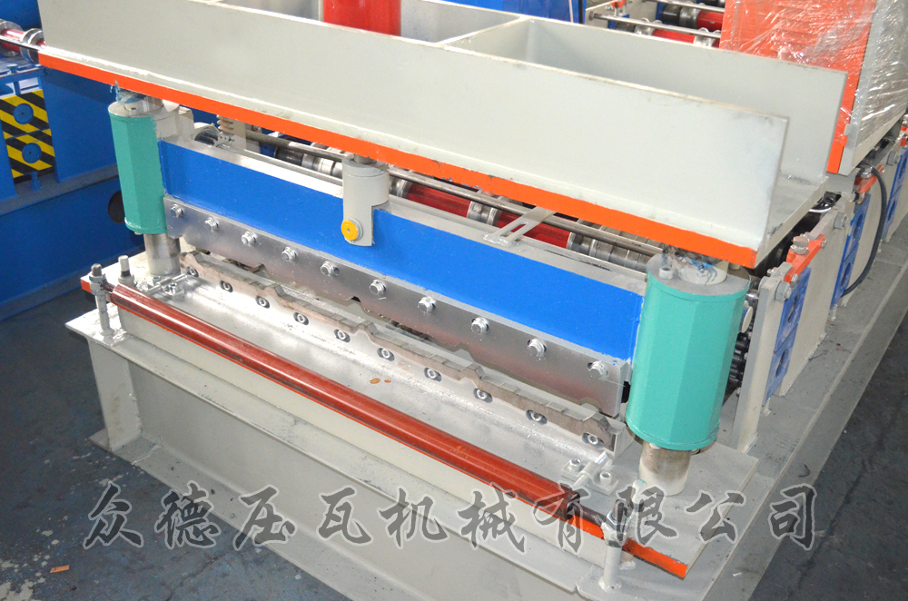 描述:加宽840型压瓦机比普通840压瓦机多一道峰进板可以是1000宽也可以是1250宽度的压好板型后的宽度是840或是1050宽度使用方便一台设备可以两用。